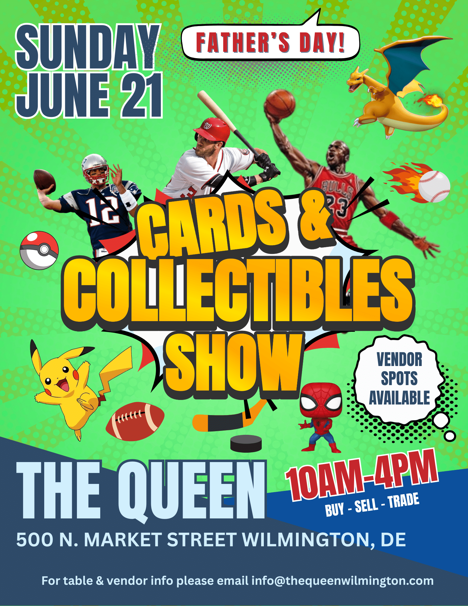 Buy, sell, trade, and discover rare finds while connecting with fellow collectors in one of Wilmington’s most iconic venues. Bring your dad, bring your kids, and bring your best cards to trade!